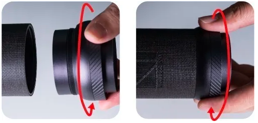 ![]() | Drehen Sie die Gratringeinheit um. (Gewinde in umgekehrter Richtung drehen) bis zur engsten Position. |