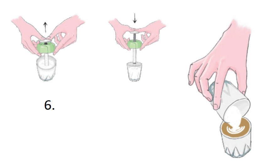 - Wenn Sie mit der Kaffeemaschine Milchschaum zubereitet haben, tauchen Sie die Pumpe in Wasser und pumpen Sie die restliche Milch ab