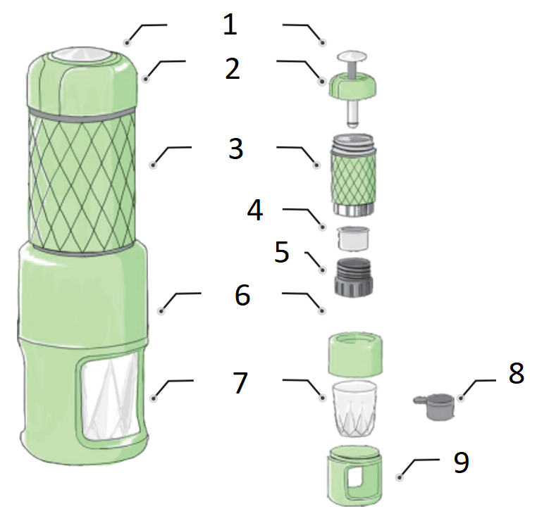 - Füllen Sie den Kaffeekorb mit gemahlenem Kaffee (7–10 g) und drücken Sie ihn mit dem Boden des Messbechers leicht an.